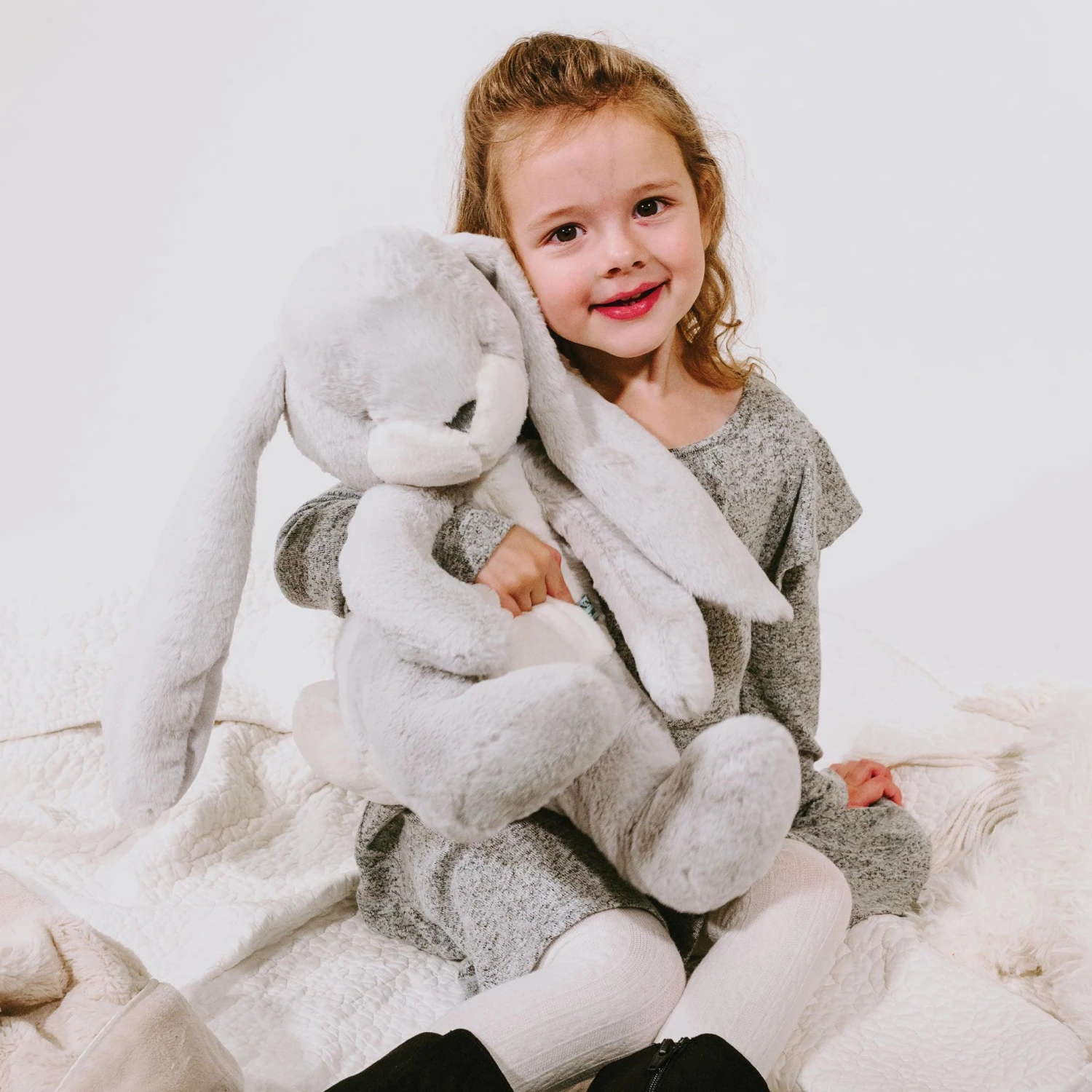 Meet Big Nibble Bunny! Huggable, luggable and simply adorable. Nibble’s long lop ears are buttery soft and perfect for soothing away worries. Luscious silver-gray fur, warm white tummy, tail, and muzzle.