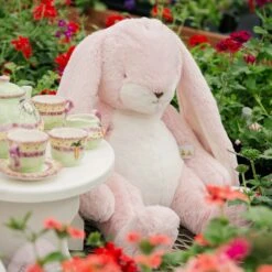 Meet Big Nibble Bunny! Huggable, luggable and simply adorable. Nibble’s long lop ears are buttery soft and perfect for soothing away worries. Luscious pretty pink fur, warm white tummy, tail and muzzle.