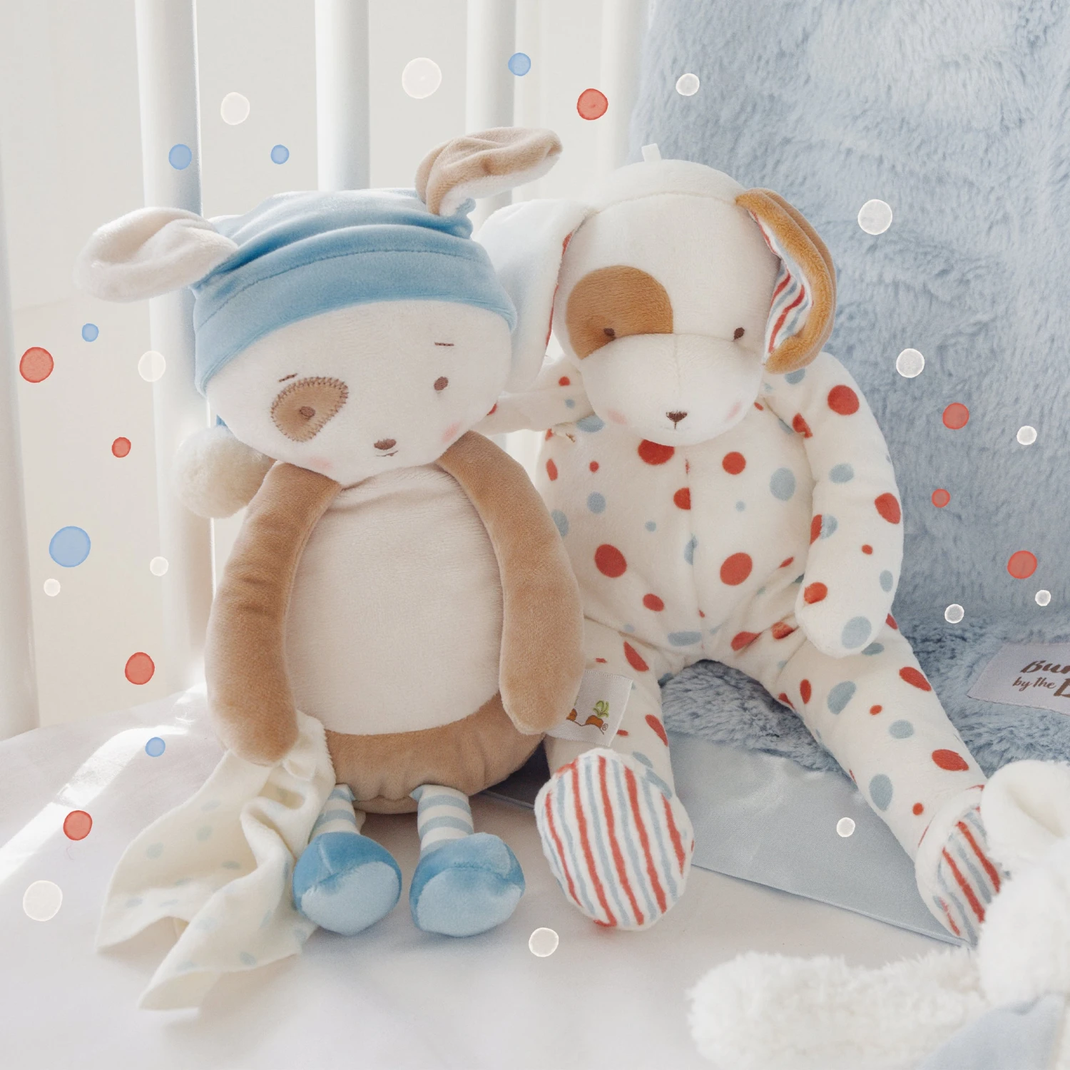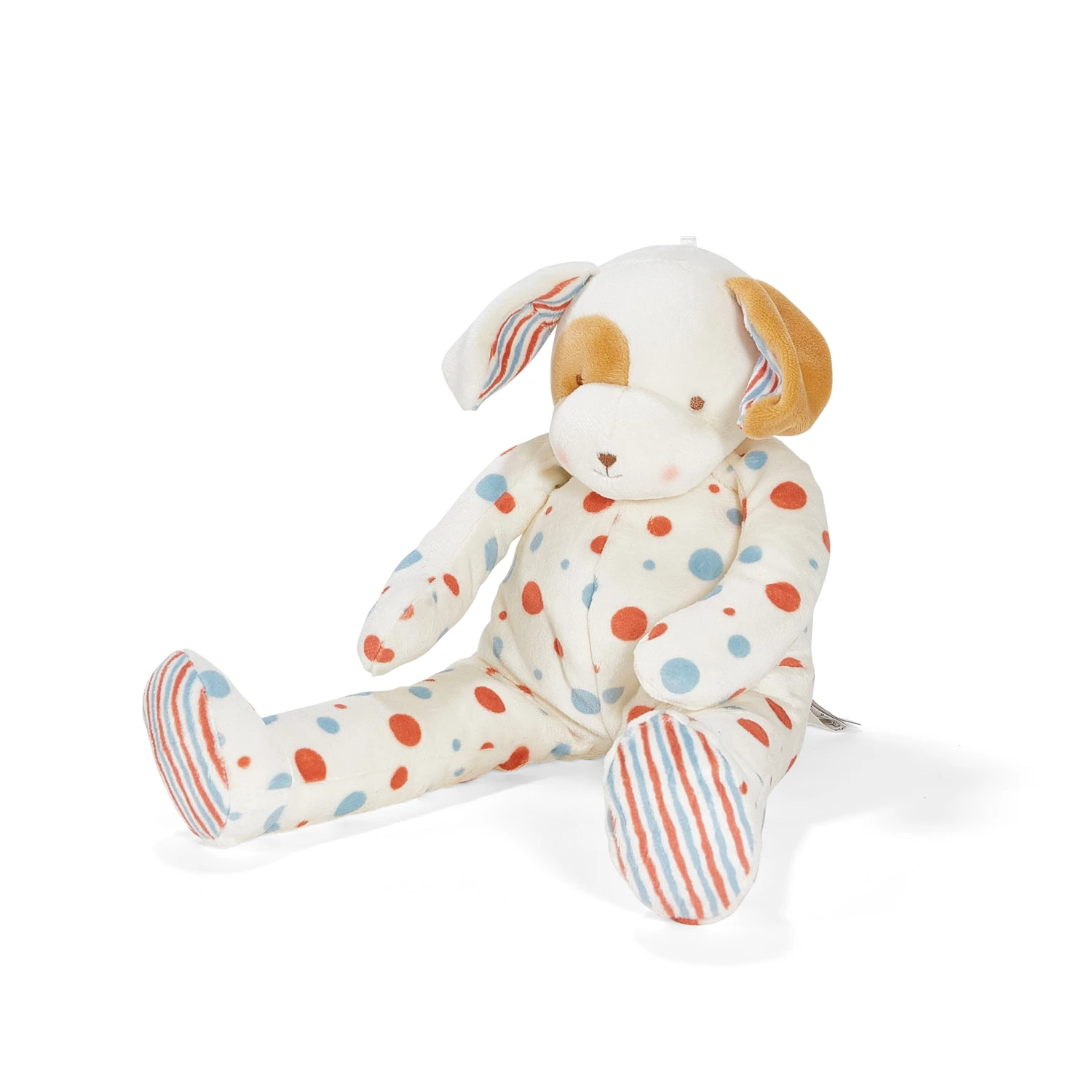 Big Skipit Buddy, the ultimate squishy bunny for little ones to hug and hold! Made with a super-soft velour body and decorated with playful blue & red polka dots and striped accents in the ears and feet, Big Bloom is as huggable as can be. With its floppy, luggable design, this big puppy buddy is perfect for snuggles and adventures alike, bringing endless comfort and joy to every cuddle session.