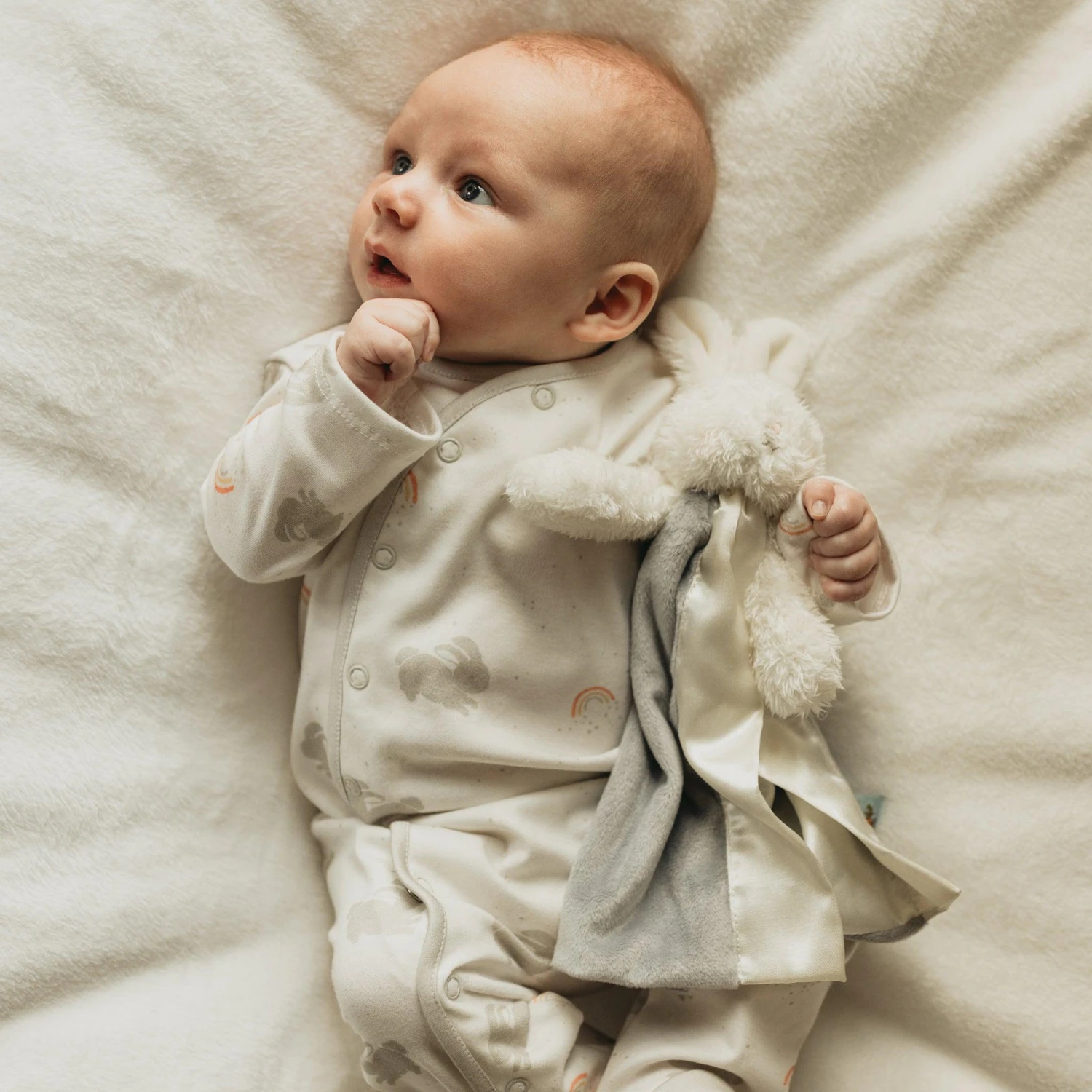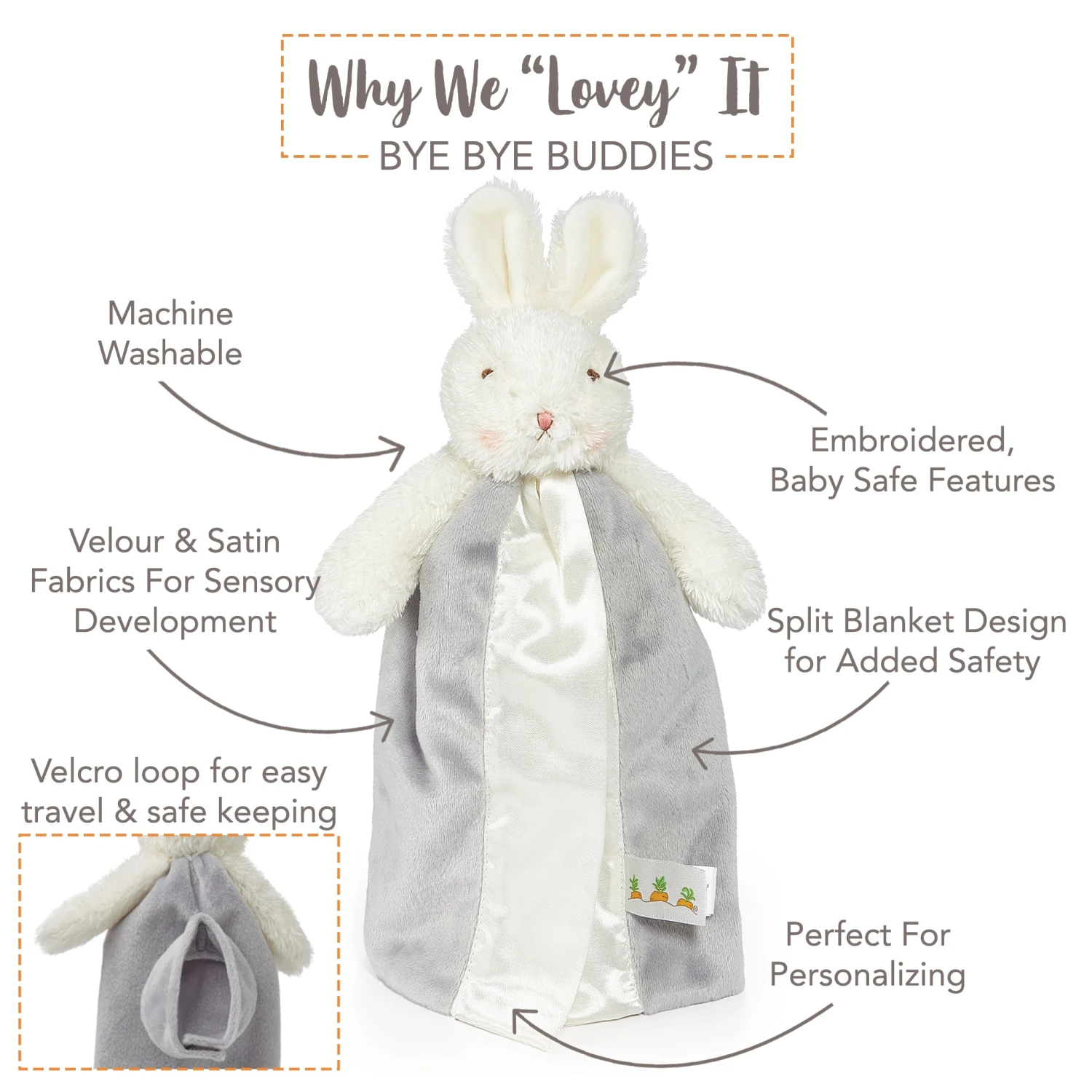Bloom Bunny Bye Bye Buddy is a smaller version of our best-loved Buddy Blanket. This lovey is ready to be on the go. With a handy loop on the back to attach to the car seat, stroller or crib you’re sure to never be left without this precious friend again.