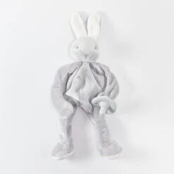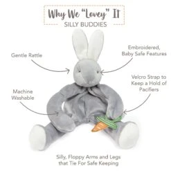 Bloom Bunny Silly Buddy animal pacifier holder is the perfect gift for your wee one with multiple ways to soothe. Luscious glacier gray, super-soft and floppy, super silly, and oh so useful, this take-a-long pal will tie onto baby’s stroller, crib or car seat.
