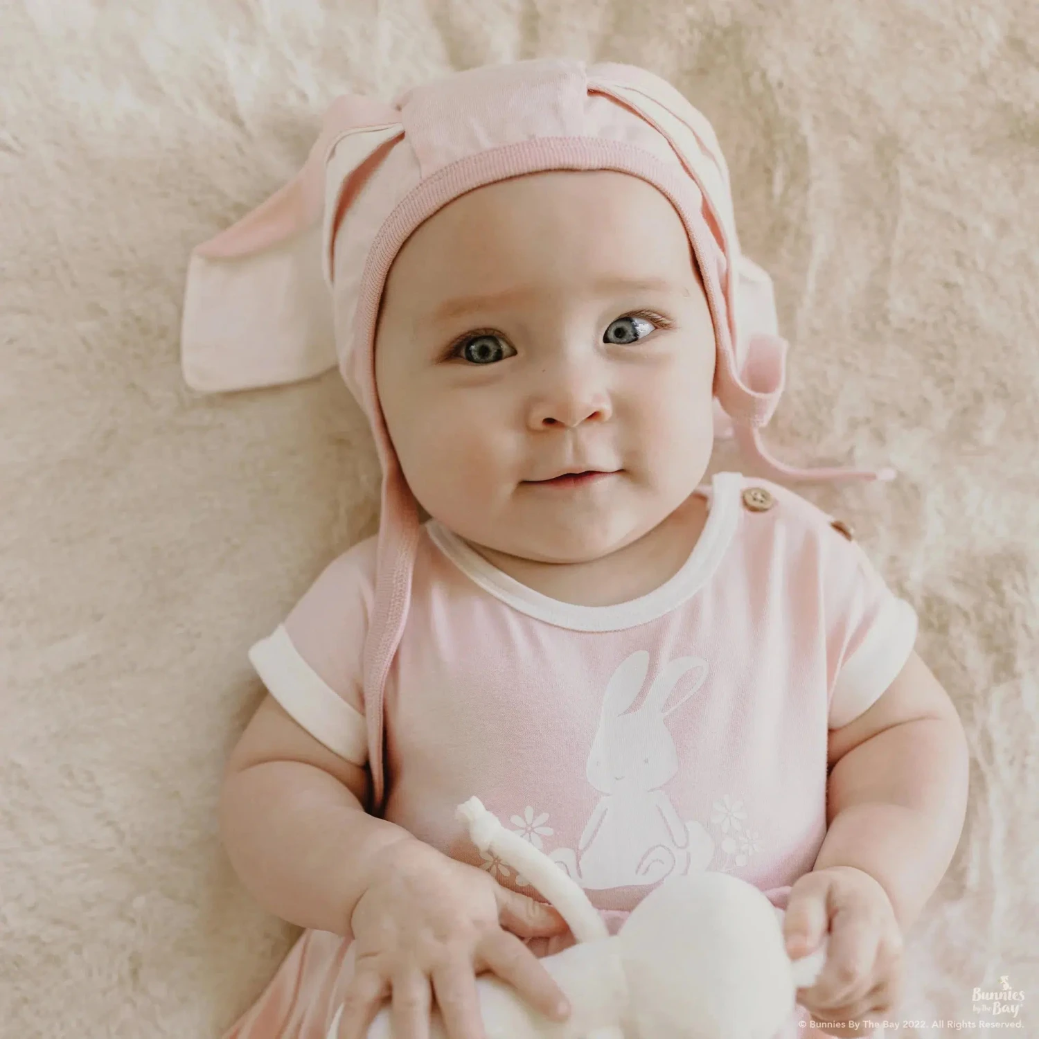 The sweetest addition to any outfit, Blossom’s Organic Hop Hat! This super soft organic cap has darling lop-eared bunny ears, under chin ties and comes in your favorite Blossom Bunny Pink. Will indeed make an adorable statement to any outfit.