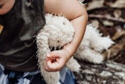 Harey the Bunny Rabbit- Warm almond scraggly fur body with handcrafted, embroidered face and a very bushy white tail. Harey is our favorite little bunny rabbit woodland friend over at Camp Cricket.