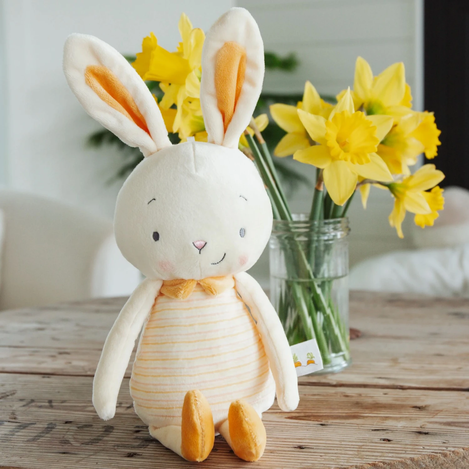 Welcome Lemon Jelly, the sunniest bunny in the Jelly Bunny Collection! This pastel yellow bunny is soft as a cloud, dressed in a charming striped top with a little collar for an extra touch of sweetness. With an embroidered face, perky ears, and floppy arms & legs, Lemon Jelly is perfect for endless hugs and playtime fun. Whether for little ones or bunny enthusiasts, this cheery plush brings warmth and joy wherever it goes. Lemon Jelly is here to brighten your day and hop right into your heart!