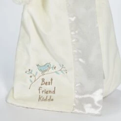 Sure to become a best friend for your little one, the difference is in the details. From the embroidered message along the edge of the blanket that reads, “Best Friend Kiddo” with a darling little aqua bird perched on a branch, to the signature three carrot tag that every baby will undoubtedly explore with their little fingers, our security buddy blankets are a must-have comfort for baby. Add a monogram, name, date, or short message with our custom embroidery option to create an even better baby gift that will be treasured for years to come!