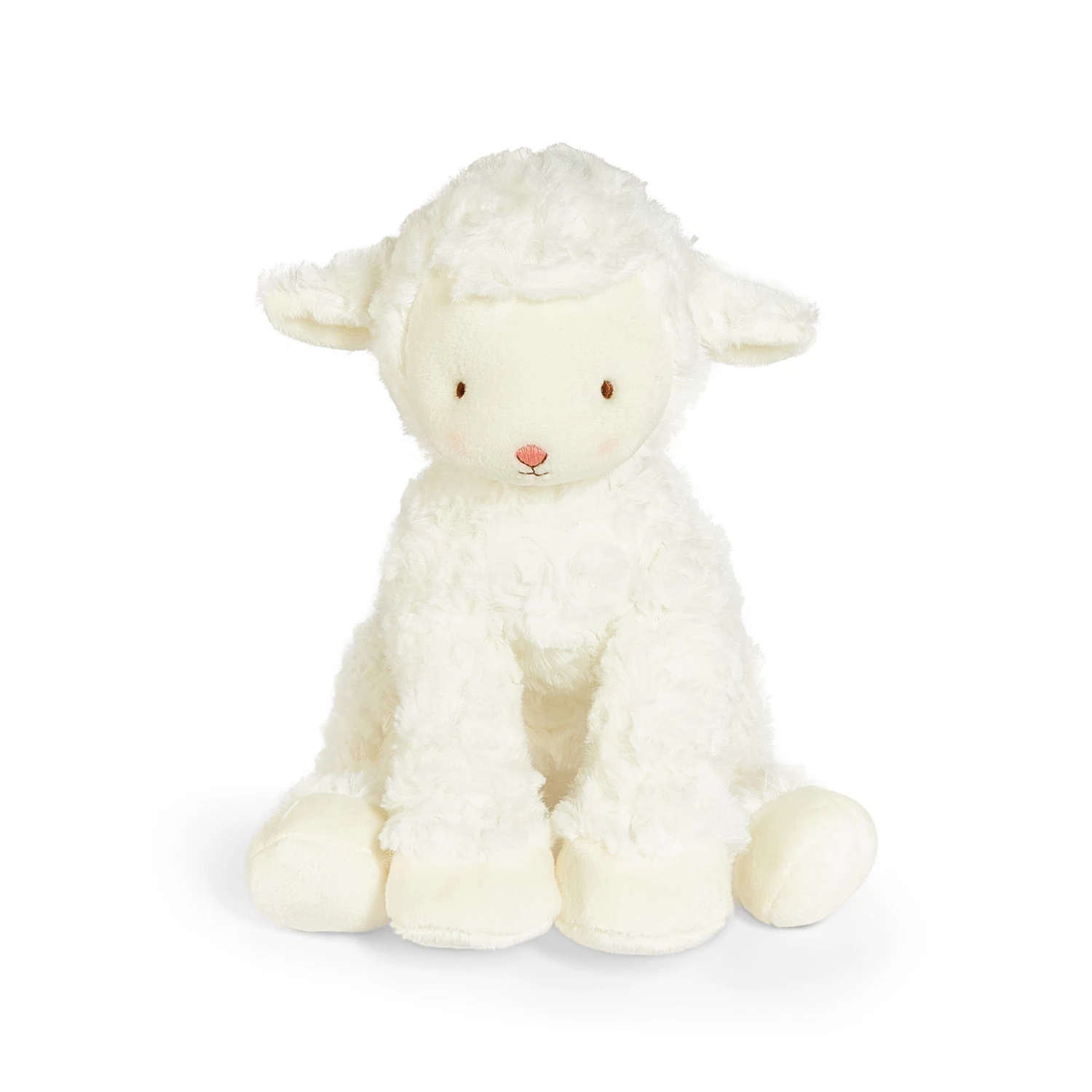 Just the right size to hug your back, this lamb stuffed animal features a soft coat of swirly, snuggle-down fur, and his paws and ears are lined with cozy white velour. It has a cute hand-embroidered face and rosy, pink cheeks.Â