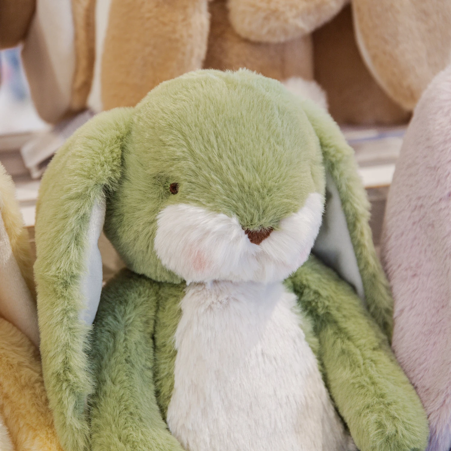 Little Floppy Nibble Bunny is sweet, tender and oh-my-gosh unbelievably soft, and now floppier than ever. This stuffed animal has a hand-embroidered face, pink cheeks, and a big fluffy tail. Features luxurious Pistachio and warm white fur, with velour-lined ears perfect for personalizing. This plush bunny will become your best friend indeed.