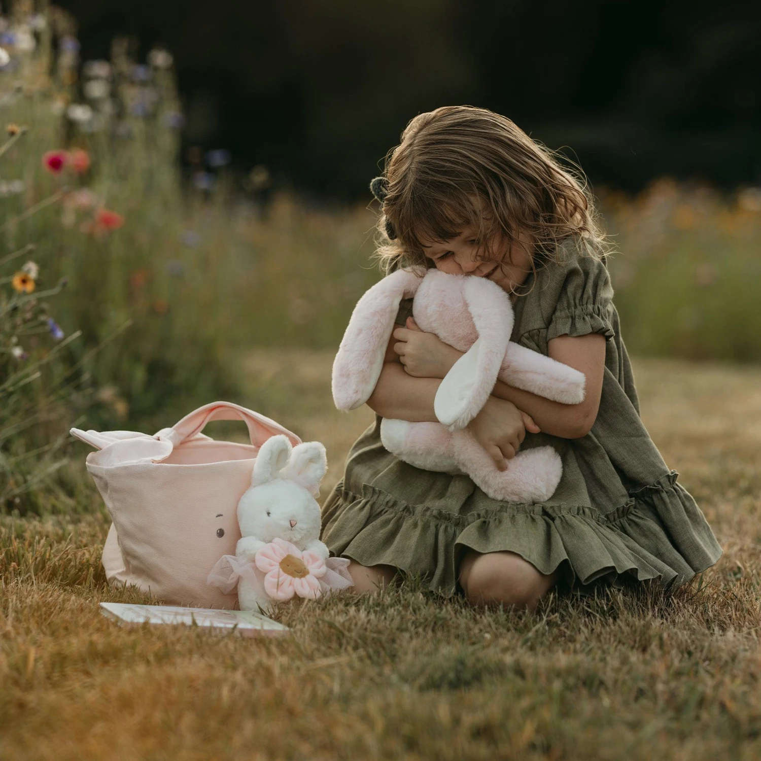 This bunny has luscious baby pink and warm white fur and velour lined ears perfect for personalizing. This is sure to be a favorite stuffed bunny for wee ones and adults alike with its heirloom quality and timeless appeal.