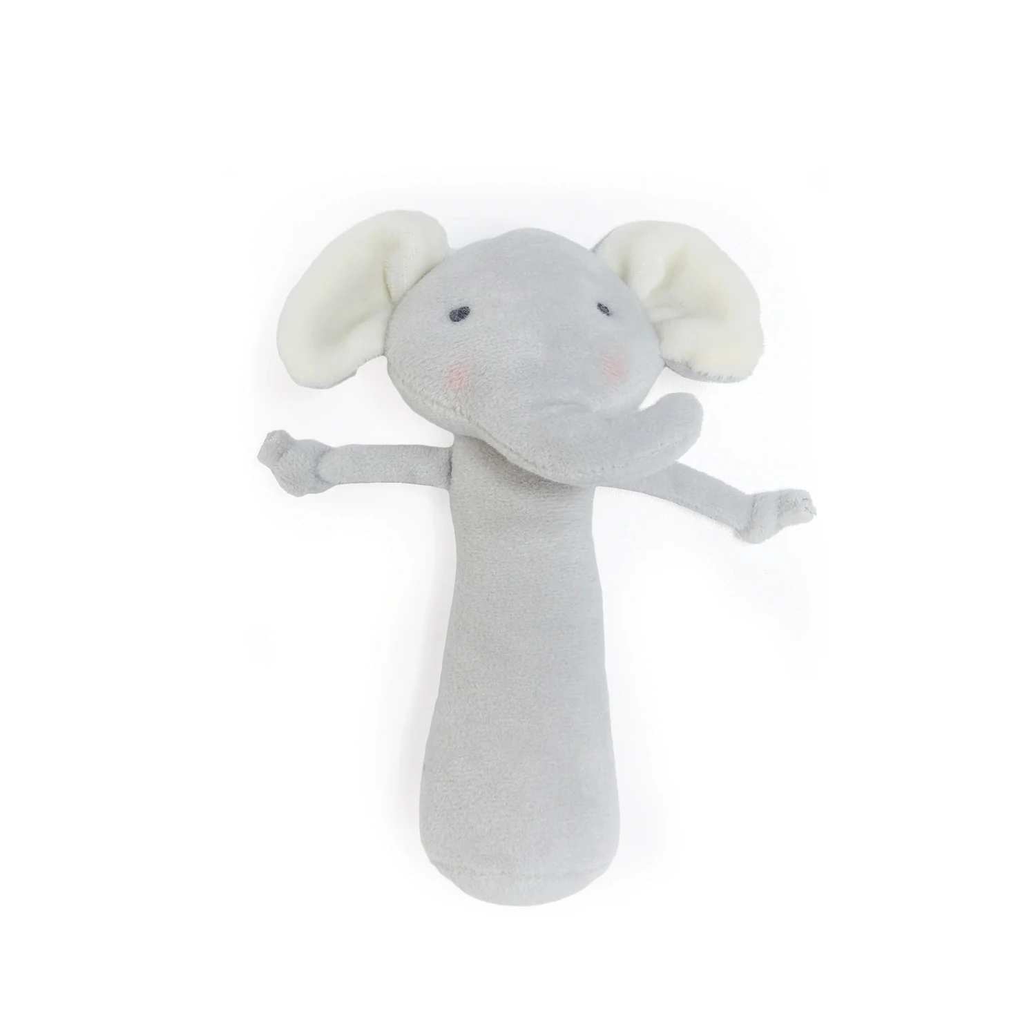 Friendly Chime Peanut is made of soft gray velour with adorably little elephant ears and trunk. With hand-embroidered details for a too-cute face, pinked cheery cheeks, and soft dangling arms for chewing and soothing.Â