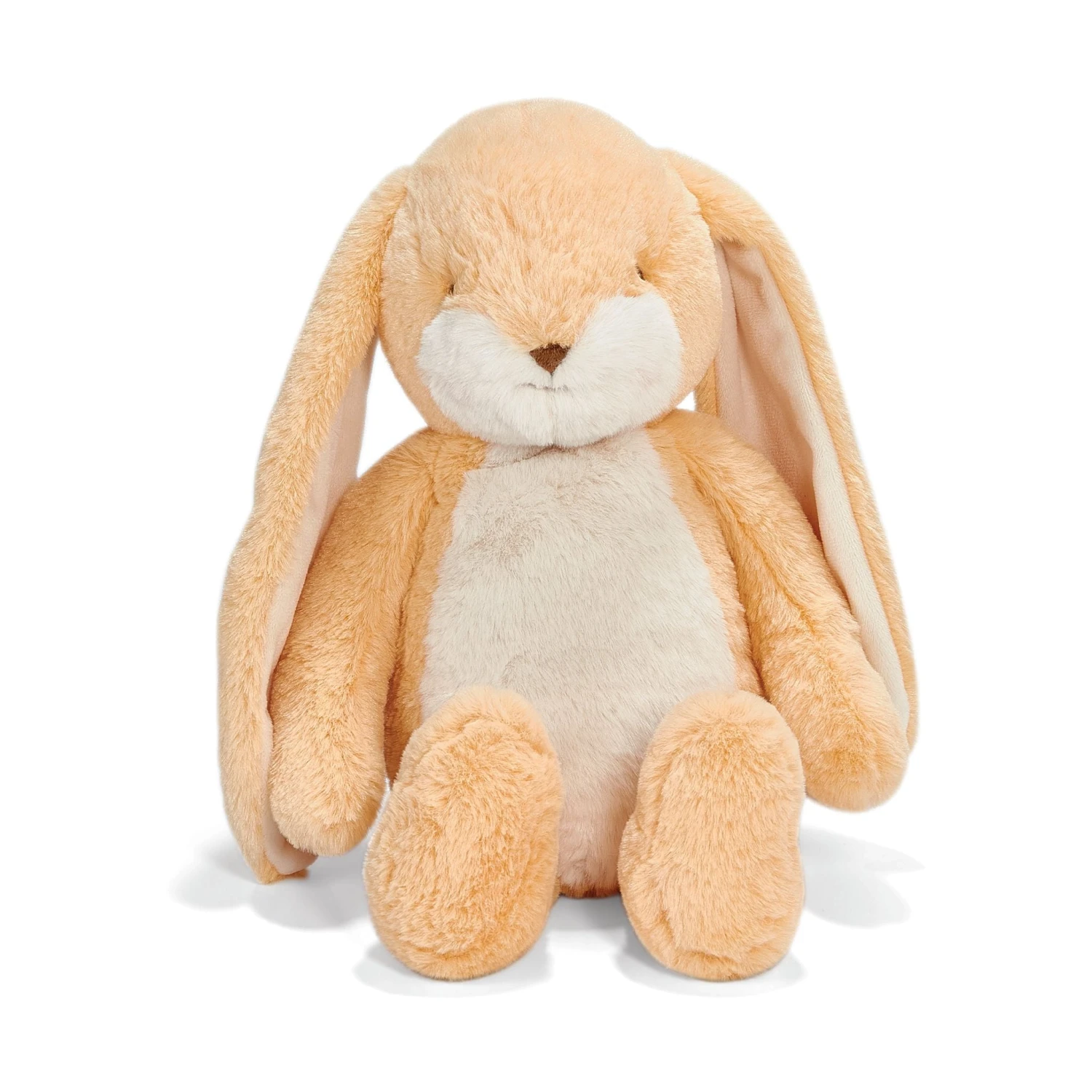 Sweet Nibble Bunny is sweet, tender and oh-my-gosh unbelievably soft, and now floppier than ever, and ready to be snuggled.  This stuffed animal has a hand-embroidered face, pink cheeks, and big fluffy tail. Features Apricot Cream and warm white fur, with velour-lined ears perfect for personalizing. Measuring 16″ from head to toe, this plush bunny will become your best friend indeed.
