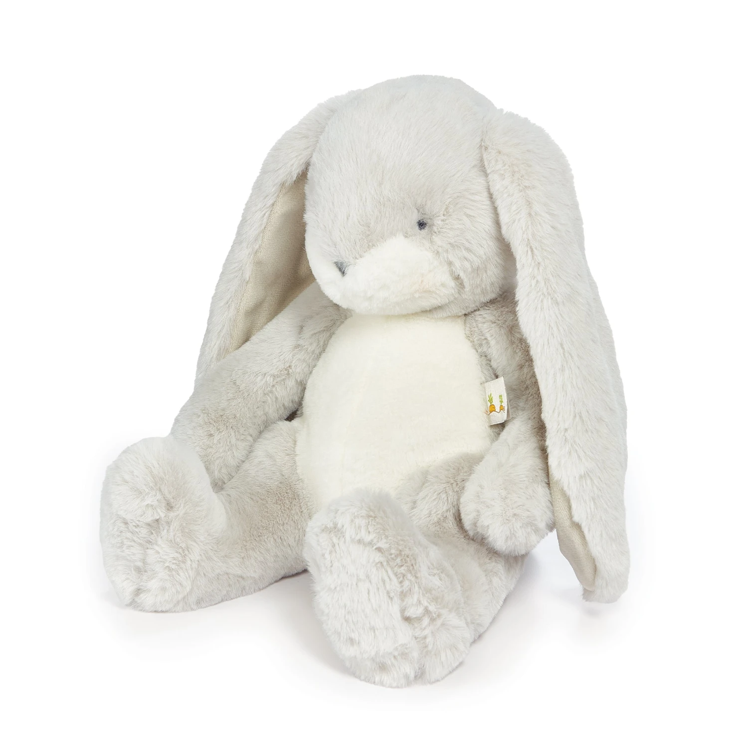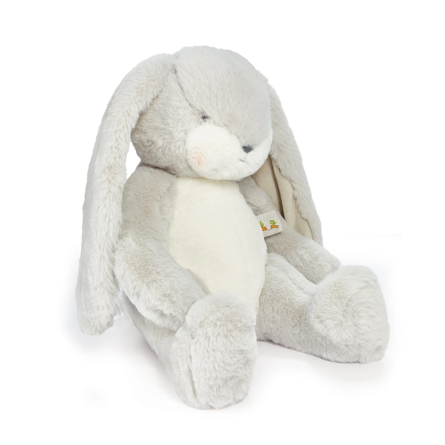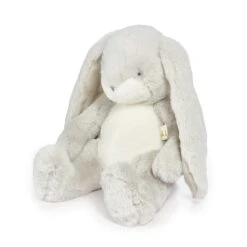 Sweet Nibble Bunny is sweet, tender and oh-my-gosh unbelievably soft. This stuffed animal has a hand-embroidered face, pink cheeks, and big fluffy tail. Features silver grey and warm white fur, with velour-lined ears perfect for personalizing. This plush bunny will become your best friend indeed.