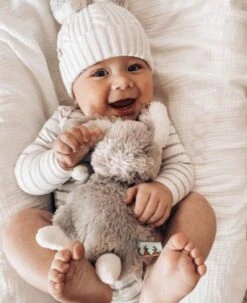 This is one chubby little grey bunny stuffie that you are sure to love. Shaggy grey fur and white details on this stuffed hare with its baby-safe embroidered face and sweet pink cheeks make it the perfect wee size gift for everyone!